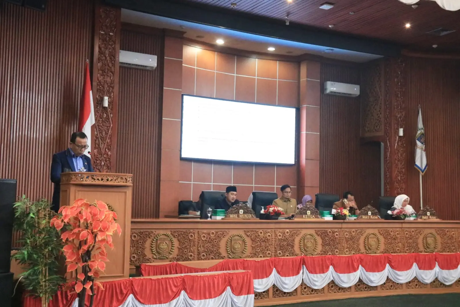 berita.depok.go.id - Asisten Pemerintahan dan Kesejahteraan Rakyat (Aspemkesra) Sekretariat Daerah Kota Depok Sri Utomo bersama Kepala Dinas Lingkungan Hidup dan Kebersihan (DLHK) Etty Suryahati serta Camat dan Lurah se-Kota Depok melakukan penanaman pohon dalam rangka peringatan Hari Menanam Pohon Sedunia dan pembukaan Bulan Bhakti Gotong Royong Masyarakat (BBGRM) Tingkat Kota Depok di Kampus Universitas Islam Internasional Indonesia (UIII), Kelurahan Cisalak, Sukmajaya, Senin (28/11/22). (JD01/EUD02)