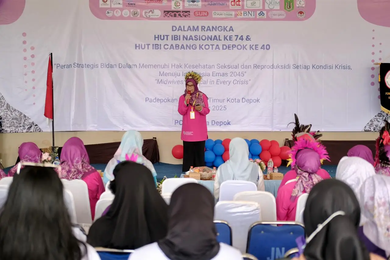 Hal tersebut disampaikan Cing Ikah saat memberikan sambutan dalam kegiatan HUT ke-74 Ikatan Bidan Indonesia (IBI) Nasional dan HUT ke-40 IBI Cabang Kota Depok di Taman Alun-Alun Kota Depok, Kecamatan Cilodong, Sabtu (18/10/25).