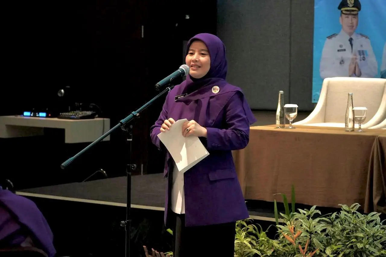 Kepala BKD Kota Depok, Nina Suzana (tengah) saat memberikan sambutan dalam kegiatan launching perekam transaksi online di Rumah Makan Simpang Raya Margonda, belum lama ini. foto by bima
