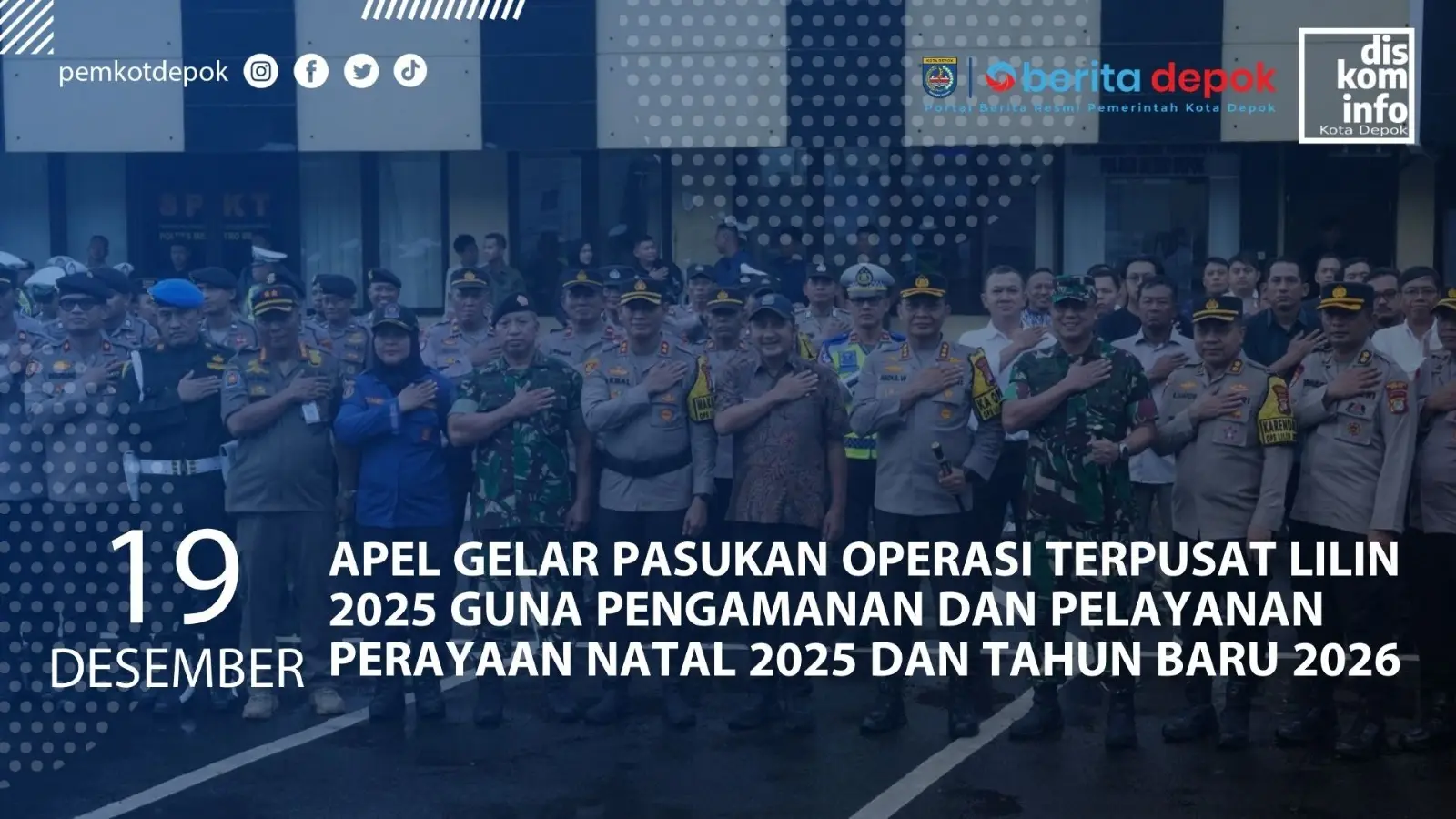 Polres Metro Depok menggelar Apel Gelar Pasukan Operasi Terpusat Lilin 2025 guna pengamanan dan pelayanan perayaan Natal 2025 dan Tahun Baru 2026 di halaman Mapolres Metro Depok, Jumat (19/12/25).