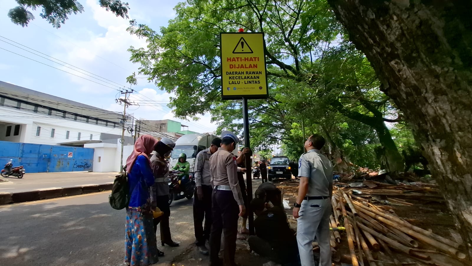 Dalam kegiatan tersebut, Satlantas Polres Metro Depok bersama Jasa Raharja memasang satu unit rambu peringatan di titik strategis Jalan Raya Bogor. Sebelumnya, kegiatan serupa juga telah dilakukan di beberapa wilayah lain yang memiliki tingkat kecelakaan tinggi.