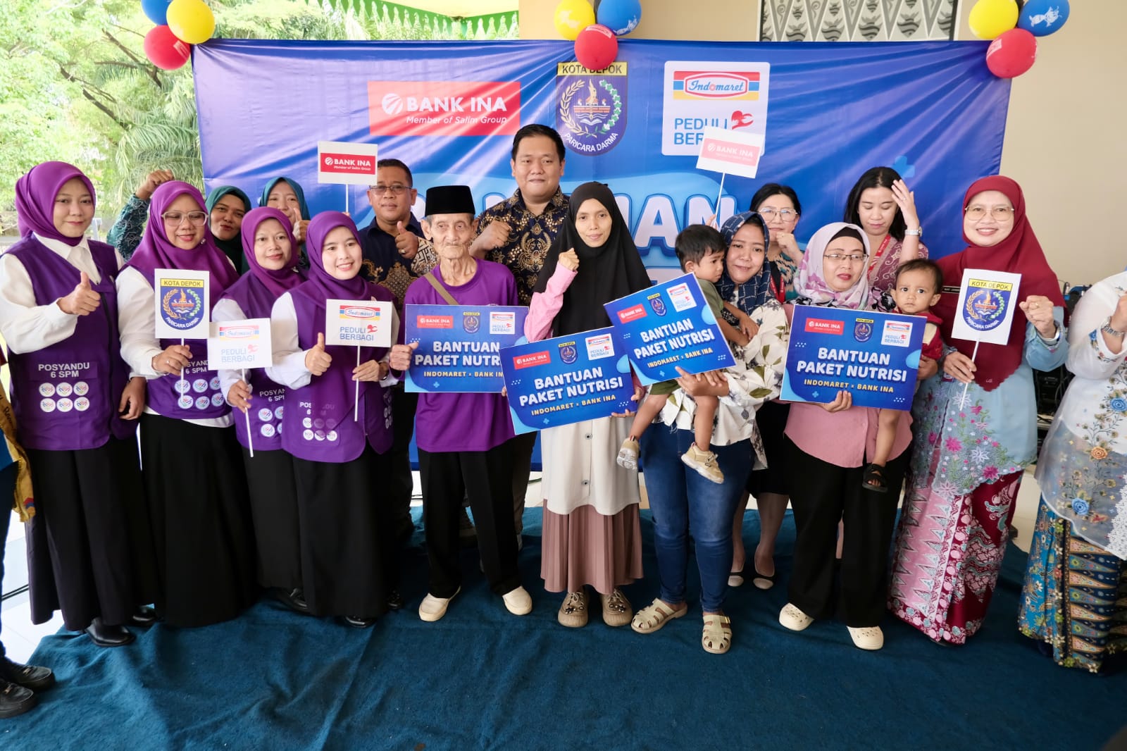 Pemberian sejumlah paket nutrisi kolaborasi Tim Pembina Posyandu Kota Depok dengan Indomaret dan Bank INA. Paket nutrisi diberikan kepada ibu hamil, balita dan lansia. (Foto : Diskominfo Depok).