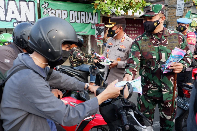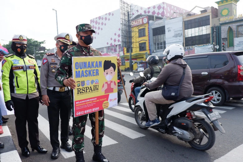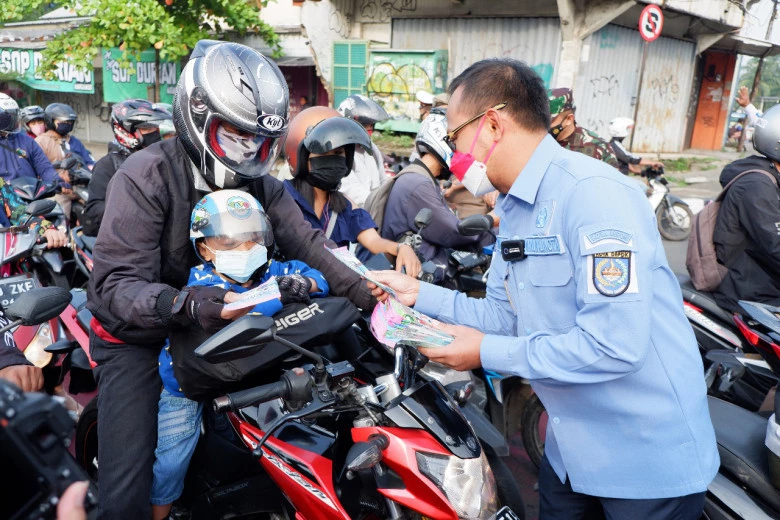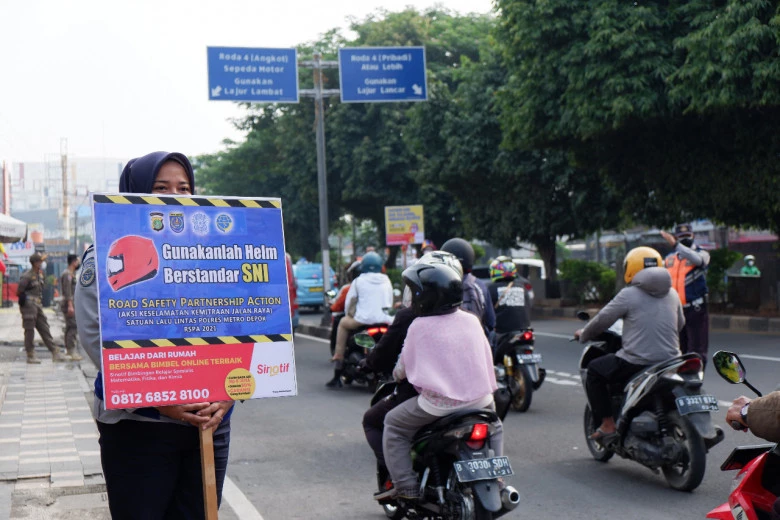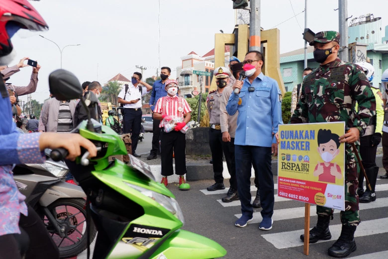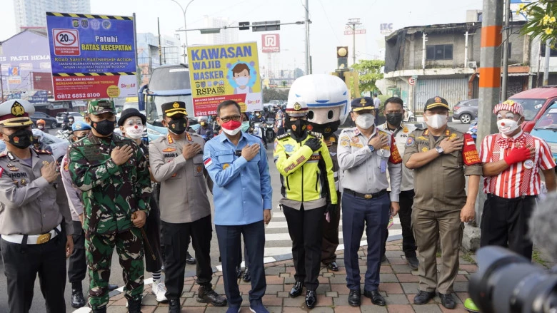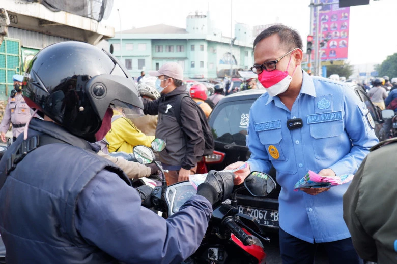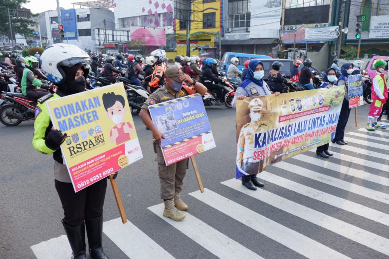 Pemerintah Kota Depok bersama Polres Metro Depok dan Kodim 0508/Depok menggelar kegiatan Optimalisasi Penggunaan Lajur Lambat dan Pembagian Masker kepada pengendara kendaraan bermotor dalam rangka sosialisasi Road Safety Partnership Action (RSPA) 2021 di Simpang Ramanda, Jalan Raya Margonda, Kamis (21/10/21). Pada kegiatan tersebut Wakil Wali Kota Depok Imam Budi Hartono bersama Kapolres Metro Depok Kombes Pol. Imran Edwin Siregar dan Dandim 0508/Depok Kolonel Inf. Agus Isrok Mikroj membagikan masker serta memberikan arahan untuk mengutamakan keselamatan berkendara kepada warga.(JD01/EUD02)
