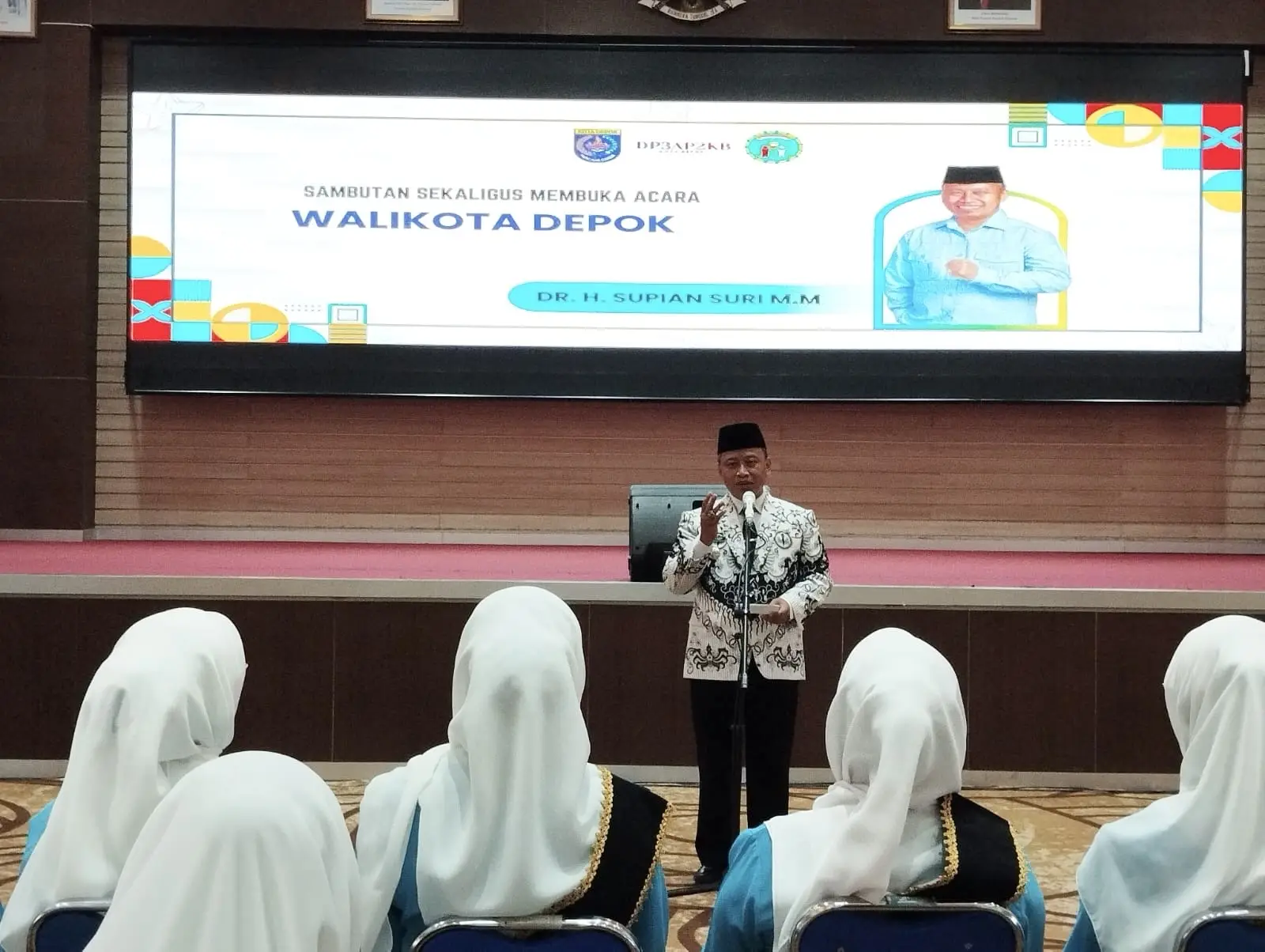 Wali Kota Depok, Supian Suri menghadiri acara Pengukuhan Bunda Forum Anak Kecamatan dan Kelurahan se-Kota Depok di Aula Serbaguna Gedung Dibaleka 2 Balai Kota Depok, Selasa (25/11/25).