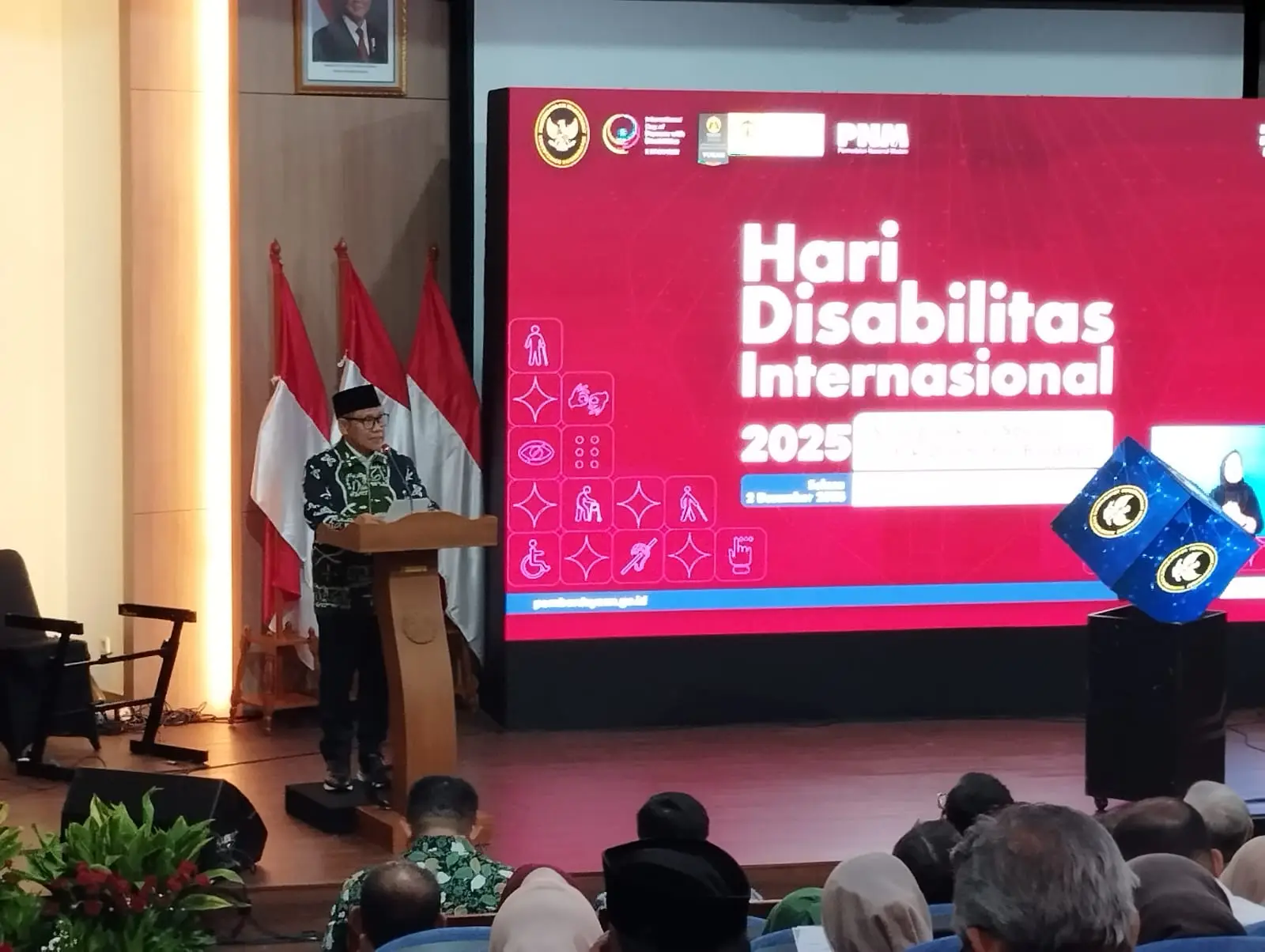 berita.depok.go.id - Wali Kota Depok, Supian Suri menghadiri acara Peringatan Hari Disabilitas Internasional tahun 2025 yang digelar Kementerian Koordinator Bidang Pemberdayaan Masyarakat Republik Indonesia (RI) bersama Universitas Indonesia (UI) di Fakultas MIPA UI, Selasa (02/12/25).